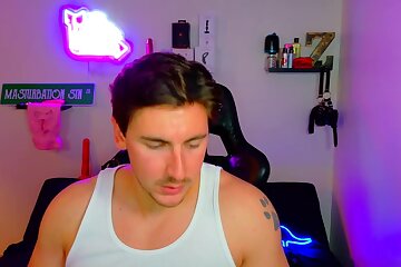 athletic European lad wanks on webcam